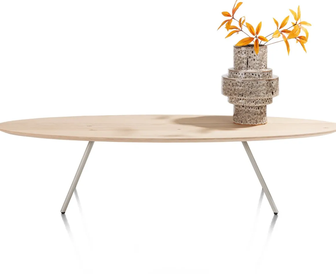 Dit is NIORA; een prachtige minimalistische salontafel met een mooie natuurlijke look. Het organisch gevormde blad is gemaakt van eikenfineer. De salontafel heeft een afmeting van 150 x 50 cm en staat op een rank metalen onderstel dat verkrijgbaar is in 2 kleuren: silk grey of grafiet. Liever een blad met een iets luxere uitstraling? NIORA is ook verkrijgbaar met een licht grijs blad, gemaakt van Primo Laminato (HPL) met marmerlook. De salontafel is er ook in een maat kleiner. Zie jij deze elegante eyecatcher al in je woonkamer staan? Tip: je shopt NIORA ook als eetkamertafel.