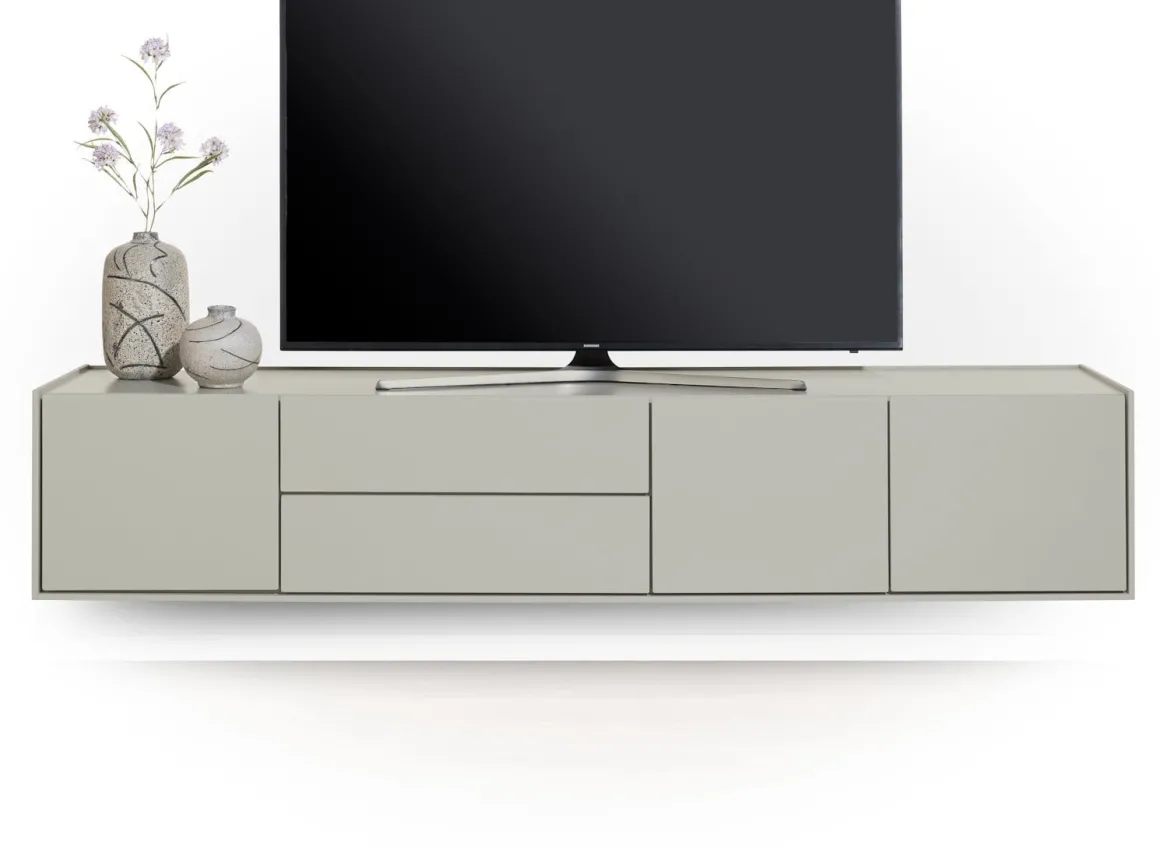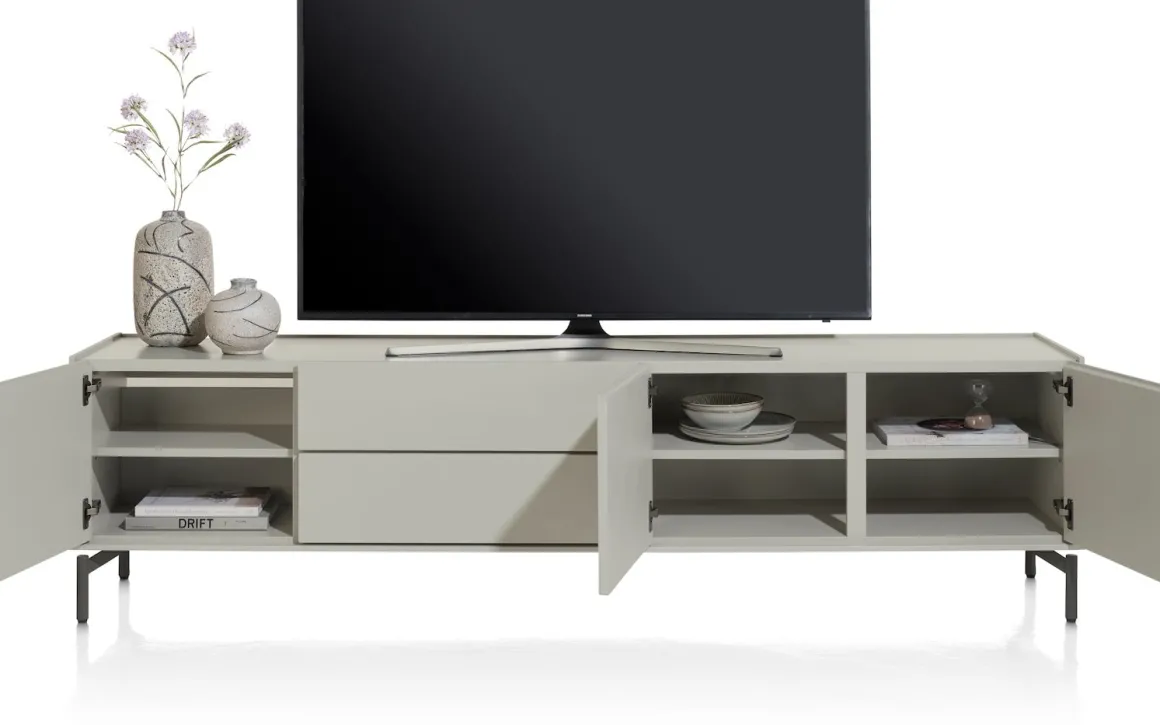 NOON lowboard 210 cm – 3-deuren + 2-laden – zijdegrijs
