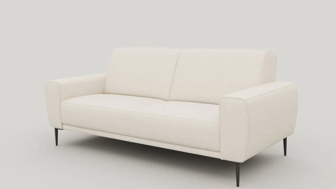 De 2,5-zits bank PUGLIA in stof Vada crème straalt rust en elegantie uit. Het heldere lijnenspel en het luxe metalen designframe geeft de bank een modern silhouet. De standaard pocketvering biedt comfortabel zitcomfort. Sofa PUGLIA is ook verkrijgbaar in de kleuren kiezel en copper. Zo kies je zelf wat bij jouw interieur past.