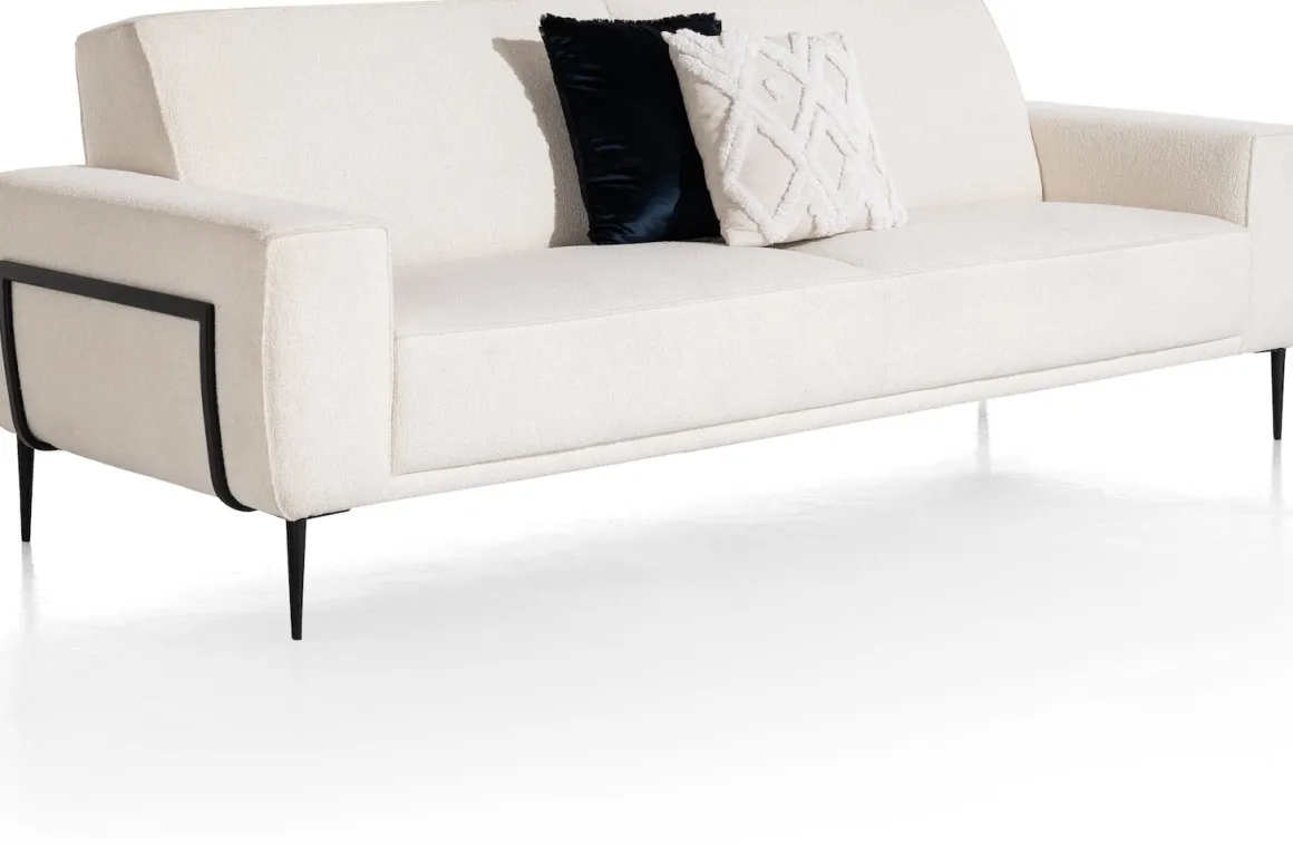 Deze 3,5-zits bank PUGLIA is een moderne bank die dankzij het minimalistische design eenvoudig te combineren is in vrijwel elk interieur. We bieden keuze uit twee soorten zitcomfort en twee verschillende armbreedtes. Voor de bekleding kun je kiezen uit tal van kleuren. Zo stel je zelf je ideale bank samen. PUGLIA staat op slanke, kegelvormige poten. Het optionele designframe zorgt voor een stijlvolle touch.