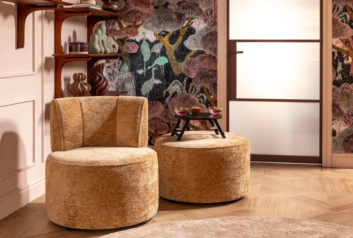 Met het zitsysteem Roan van COCOmaison kun je zelf een zithoekje samenstellen door verschillende elementen te combineren. De poefs, de bank en de fauteuil passen door hun vorm namelijk perfect samen. Alle items zijn bekleed met een trendy stof en zijn verkrijgbaar in twee kleuren. Dit is de ronde poef in kleur oker. Deze is gemaakt van 40% multiplex, 30% schuim en 30% stof. De poef is 44 cm hoog en heeft een diameter van 74 cm. Een handig detail: er worden twee sets poten meegeleverd, waardoor je de fauteuil op een standaard zithoogte kunt plaatsen, maar ook op een hoogte die geschikt is voor gebruik aan een eettafel.