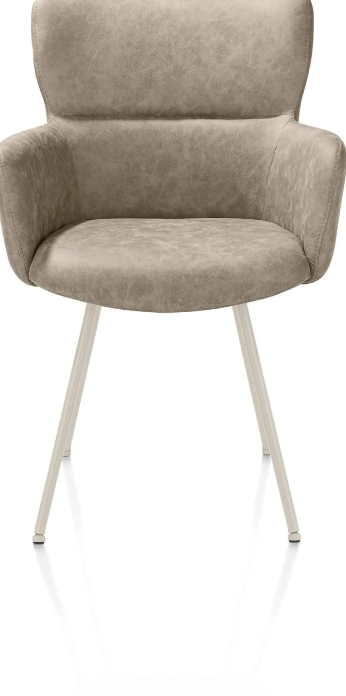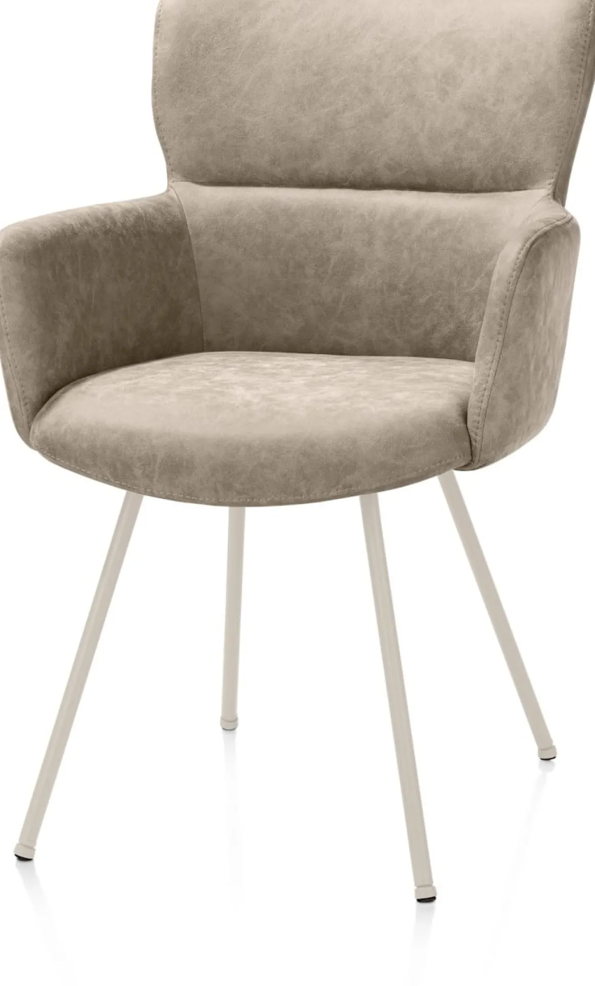 De SAGE armstoel in beige straalt warmte en rust uit. De stoel is bekleed met stof Oregon, een zachte microvezelstof met een stoere look. Dankzij de afgeronde rugleuning, geïntegreerde armleuningen en ruime zitting zit je altijd comfortabel; ideaal voor lange diners of gezellige momenten aan tafel. Het 4-poots onderstel in crèmekleur geeft de armstoel een frisse, moderne basis die mooi contrasteert met de zachte tint van de bekleding. Armstoel SAGE is verkrijgbaar in diverse uitvoeringen en kleuren, zodat je eenvoudig jouw ideale combinatie samenstelt en jouw eetruimte een persoonlijke touch geeft.