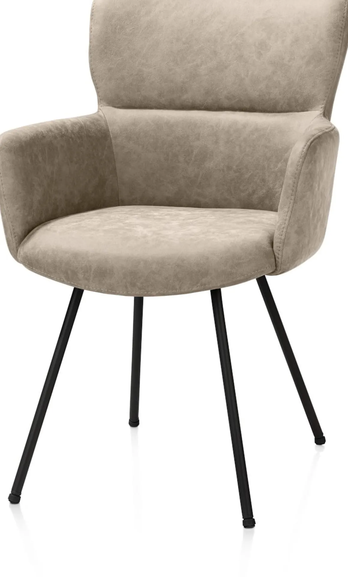 Armstoel SAGE in de kleur beige is een comfortabele en stijlvolle keuze voor elke eethoek. De stoel is bekleed met stof Oregon. De zachte, huiselijke feel en het soepele zitcomfort maken deze armstoel ideaal voor lange avonden aan tafel. Het onderstel met vier ranke poten in rough off black geeft een stoer en modern accent. Armstoel SAGE is verkrijgbaar in verschillende kleuren en afwerkingen; kies wat bij jouw interieur past.
