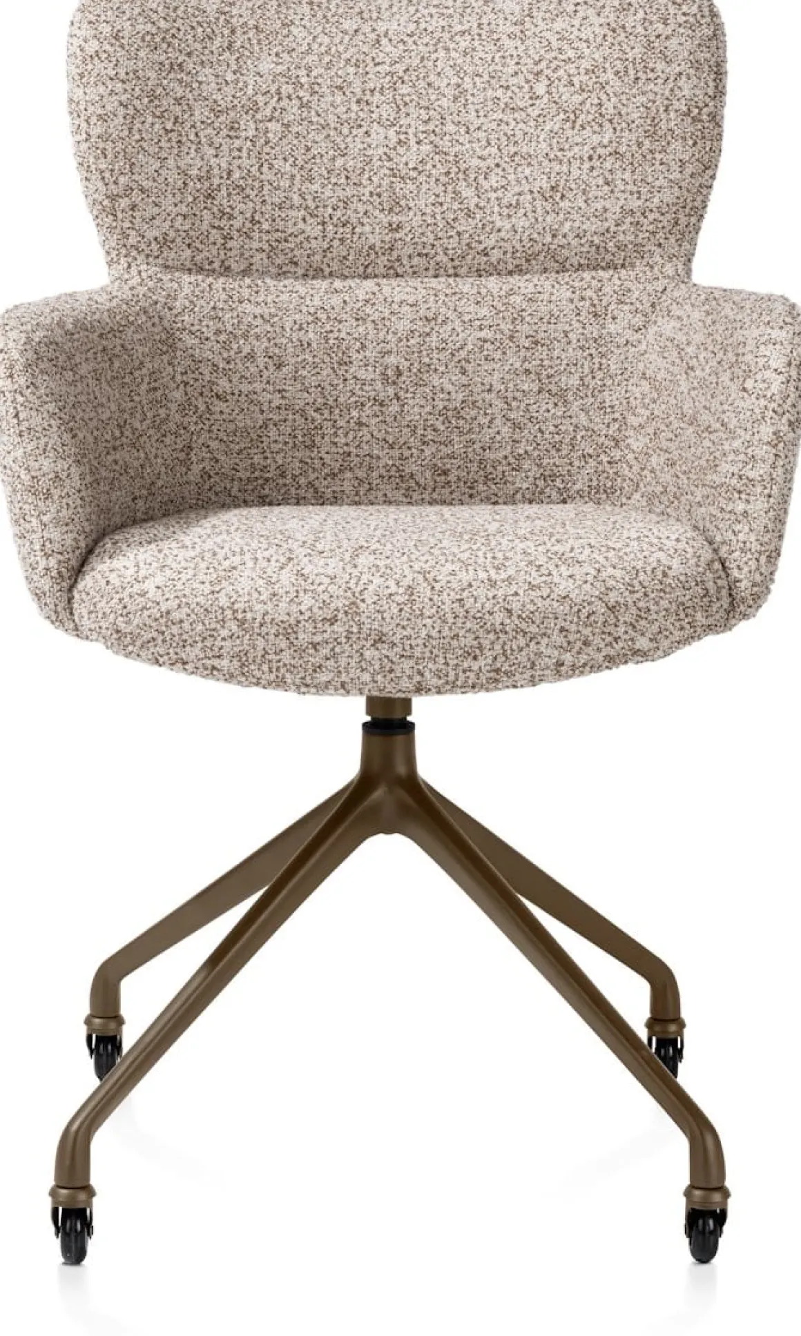 Armstoel SAGE in koperkleur brengt warmte en verfijning in je interieur. SAGE is bekleed met de zachte bekleding in stof Luton; een comfortabele bouclé met een mooie structuur die deze stoel extra uitnodigend maakt. Het aluminium frame in steelbrown geeft een natuurlijke, rustige basis, terwijl de handige wieltjes zorgen voor extra flexibiliteit. Ideaal aan de eettafel of als luxe bureaustoel in een huiselijke setting. Armstoel SAGE is er in meerdere kleuren en afwerkingen. Ontdek jouw favoriet.