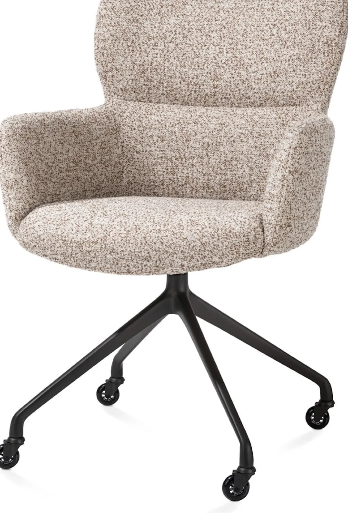 Armstoel SAGE op wielen biedt het perfecte evenwicht tussen comfort, flexibiliteit en stijl. De zachte vormen, geïntegreerde armleuningen en goed gevulde zitting zorgen voor een ontspannen zit, of je nu aan het dineren bent of thuiswerkt. Dankzij het lichtgewicht aluminium frame met wieltjes verplaats je de stoel moeiteloos; handig én comfortabel in gebruik. Je kiest uit drie moderne framekleuren: graphiet, rough off black of steelbrown. Voor de bekleding is er de selected choices collectie: een zorgvuldig samengestelde selectie stoffen in prachtige kleuren en structuren, speciaal uitgezocht om perfect te passen bij armstoel SAGE. Stel zelf jouw ideale SAGE-stoel samen.