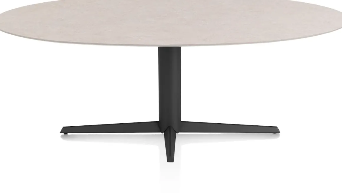 Saluti, EETKAMERTAFEL ELLIPS 210 X 105 CM. – CENTRALE POOT – ROUGH OFF BLACK – Light sand