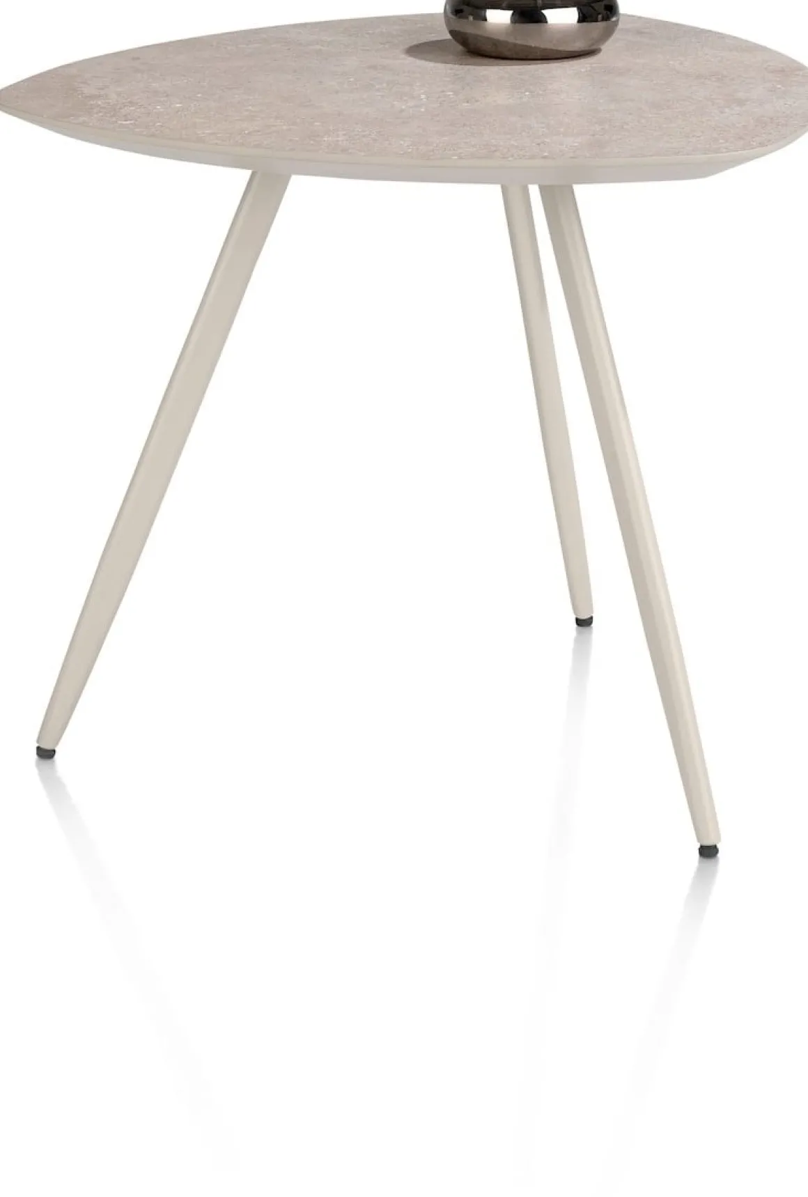 Salontafels zijn vaak het middelpunt van je zithoek. Zo ook deze stijlvolle tafel uit de SALUTINA-collectie. Het organische blad van 68 x 68 cm is uitgevoerd in MDF met een duurzame HPL-toplaag in de kleur light sand. De drie metalen pootjes in crème geven de tafel een luchtige uitstraling. Combineer ‘m met andere tafels uit dezelfde serie voor een stijlvol geheel.