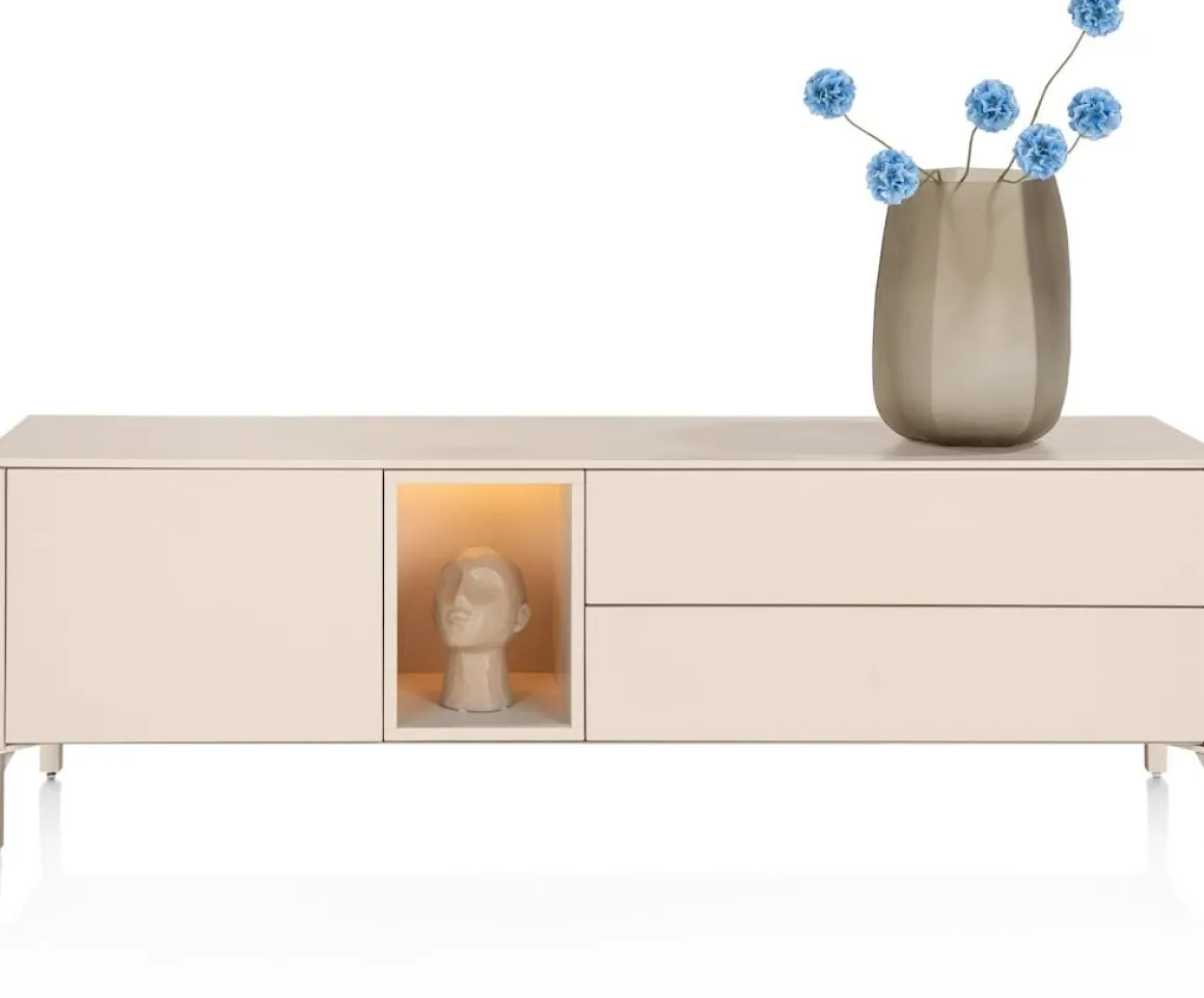 Trentino, Lowboard 180 cm. – 1-deur + 2-laden + 1-niche – mdf gelakt – Creme
