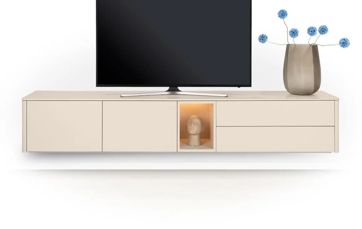 Trentino, Lowboard 240 cm. – 2-deuren + 2-laden + 1-niche – mdf gelakt – Creme