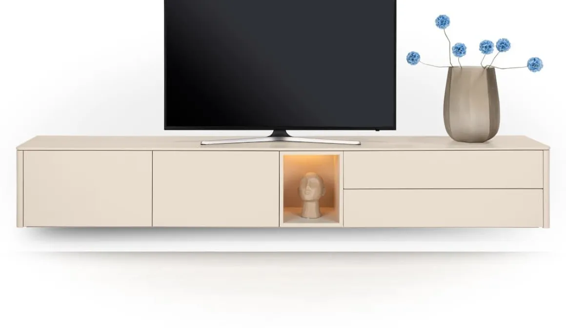 Trentino, Lowboard 270 cm. – 2-deuren + 2-laden + 1-niche – mdf gelakt – Creme