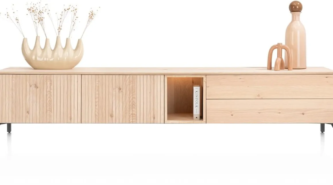 Trenton, Lowboard 270 cm. – 2-deuren + 2-laden + 1-niche – natural