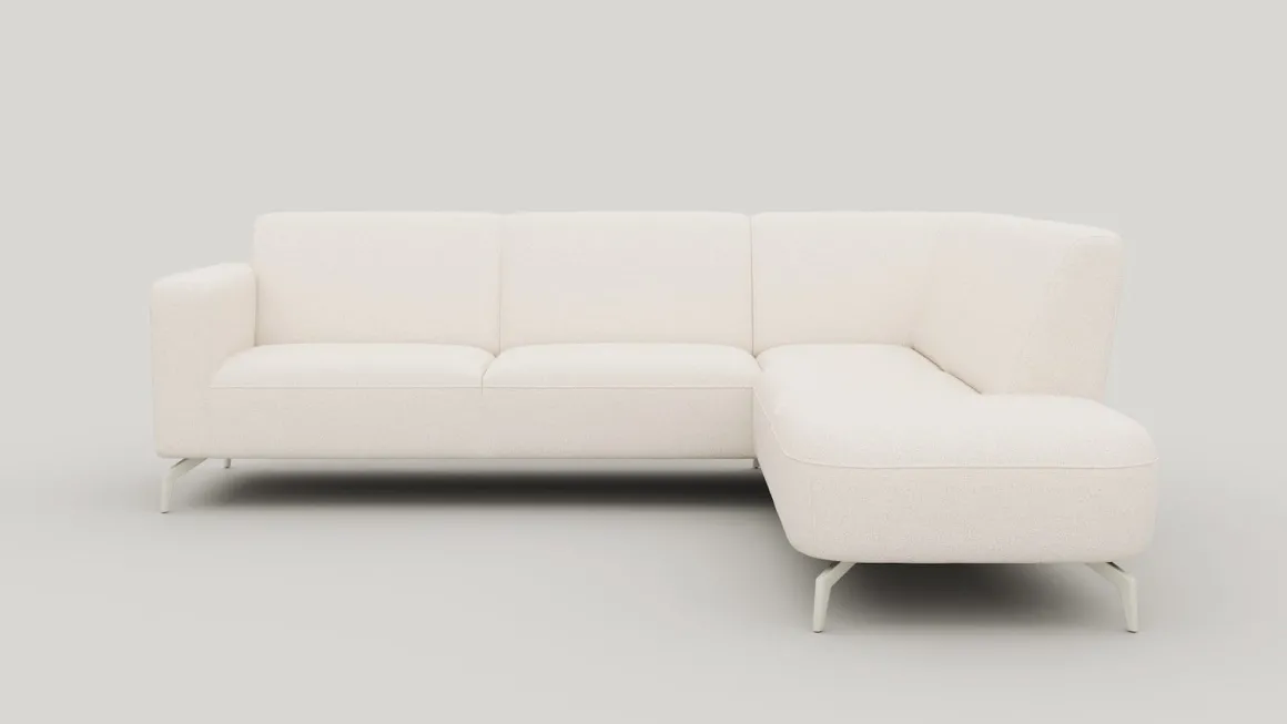Op zoek naar een bank met een moderne uitstraling én een zachte touch? Dan is deze TWIST-hoekopstelling precies wat je zoekt. De combinatie van een 2,5-zits met armleuning links en een longchair (chaise longue) rechts zorgt voor een uitnodigende, asymmetrische vorm. De bank is bekleed met stof Ponti in de kleur crème. Dit is een platgeweven stof die lekker zacht aanvoelt. De afgeronde vormen en de metalen designpoten in silk grey geven TWIST zijn kenmerkende, luchtige look.